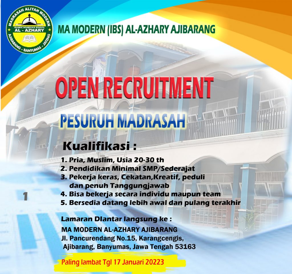 MA Modern Al Azhary Ajibarang , saat ini membutuhkan 1 (satu) personal untuk mengisi posisi PESURUH...